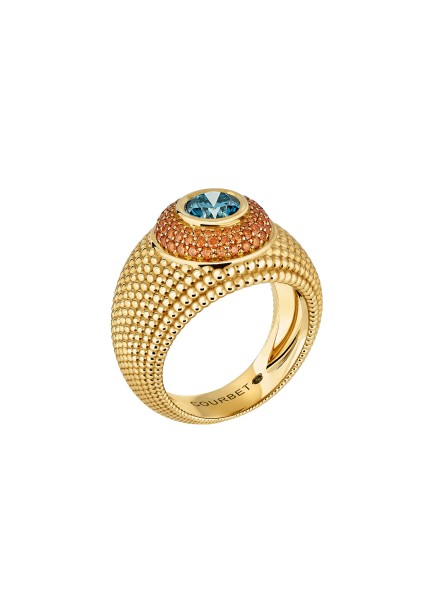 COLETTE blue centre diamond with a orange diamonds pavé set ring in yellow gold