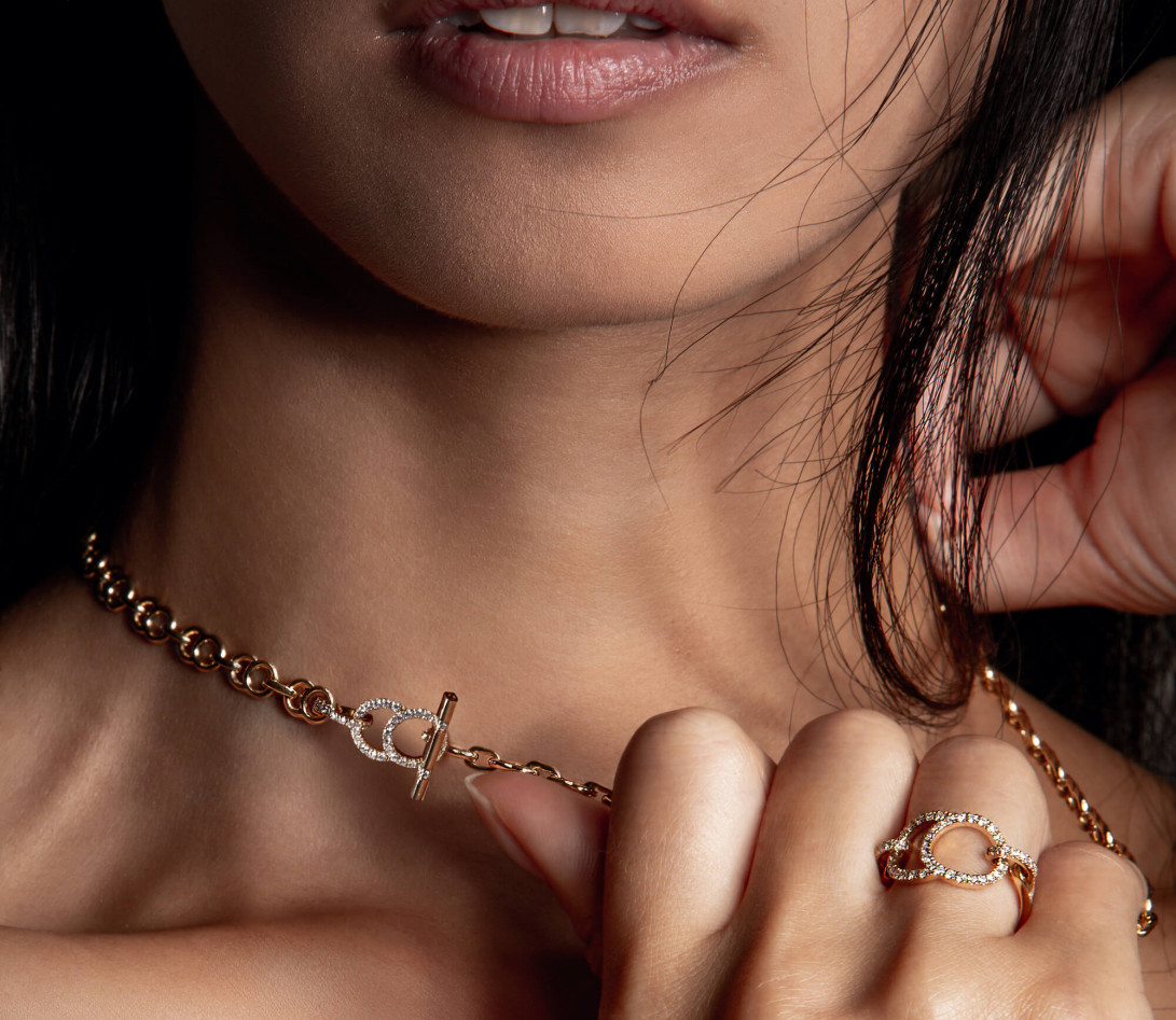 A flexible state of mind emerges from the fully hinged CÉLESTE collection. In this design, COURBET's signature C and O are tightly intertwined through a generous pavé of diamonds.