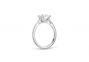 True symbol of love, respect and union, the engagement ring is a real proof of a commitment between two people. The Solitaire Courbet Classique hold the famous traditional setting with 4 prongs. The white, rose or yellow gold frame, paved or not, elevate the diamond to the light to enhance its natural radiance. With perfect and delicate proportions, this ring combines the diamond’s beauty and timeless design. Created by craftsmen and women who get a very precious know-how, this engagement ring reflects the Maison’s participation in the talent’s transmission while holding on to the traditions.