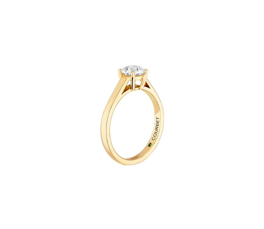 A lab-grown emerald is secretly hidden inside the ring. It represents the common ecological commitment between Courbet and the people wearing or those offering this creation. Lover of the stones and respectful of the Earth, Courbet is reinventing jewellery using lab-grown diamonds and gold recycled from industrial waste. This ring is filled with powerful symbols and values. It is an ecological alternative which preserves the beauty and magic of the universe.