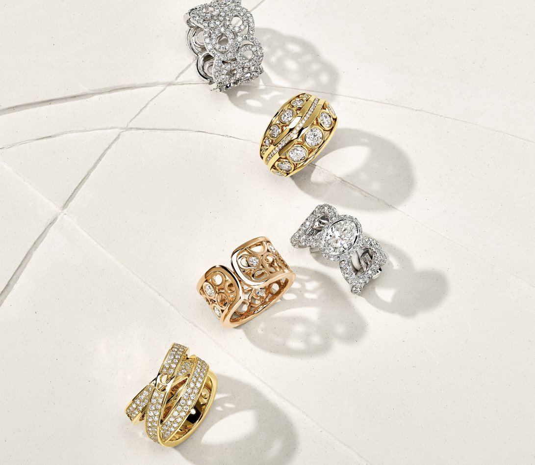 The design of the ECLIPSE Couture ring, consisting of a diamond-paved band wrapped around the finger and openworked with several motifs, offers a sense of movement that encourages the wearer to turn the jewel to appreciate its different facets. This diamond interlacing sparkles in a resolutely modern and contemporary style.