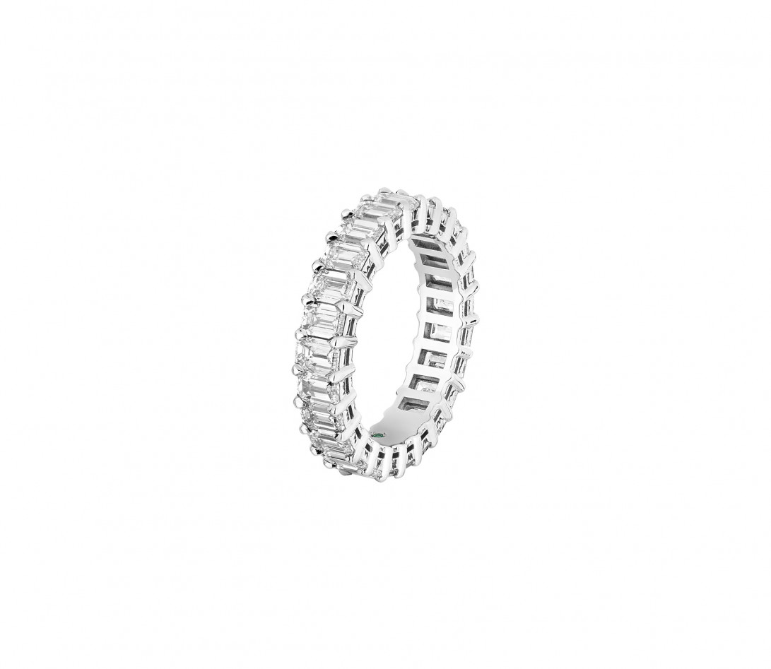 Thanks to its particularly timeless and sophisticated look, the Emerald-cut band in white gold can be chosen to symbolise a unique moment, unique to the wearer.