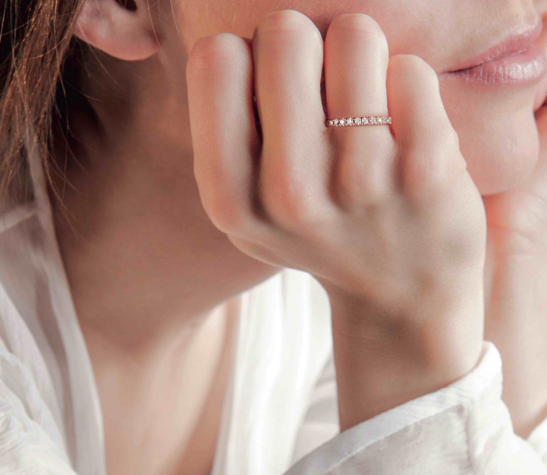 Courbet’s wedding band is the daily symbol of love and commitment around common values. Classic and timeless, this wedding band 2.3mm full-pavé is made of a simple white, yellow or rose gold ring, which allows it to be worn alone or with an engagement ring.