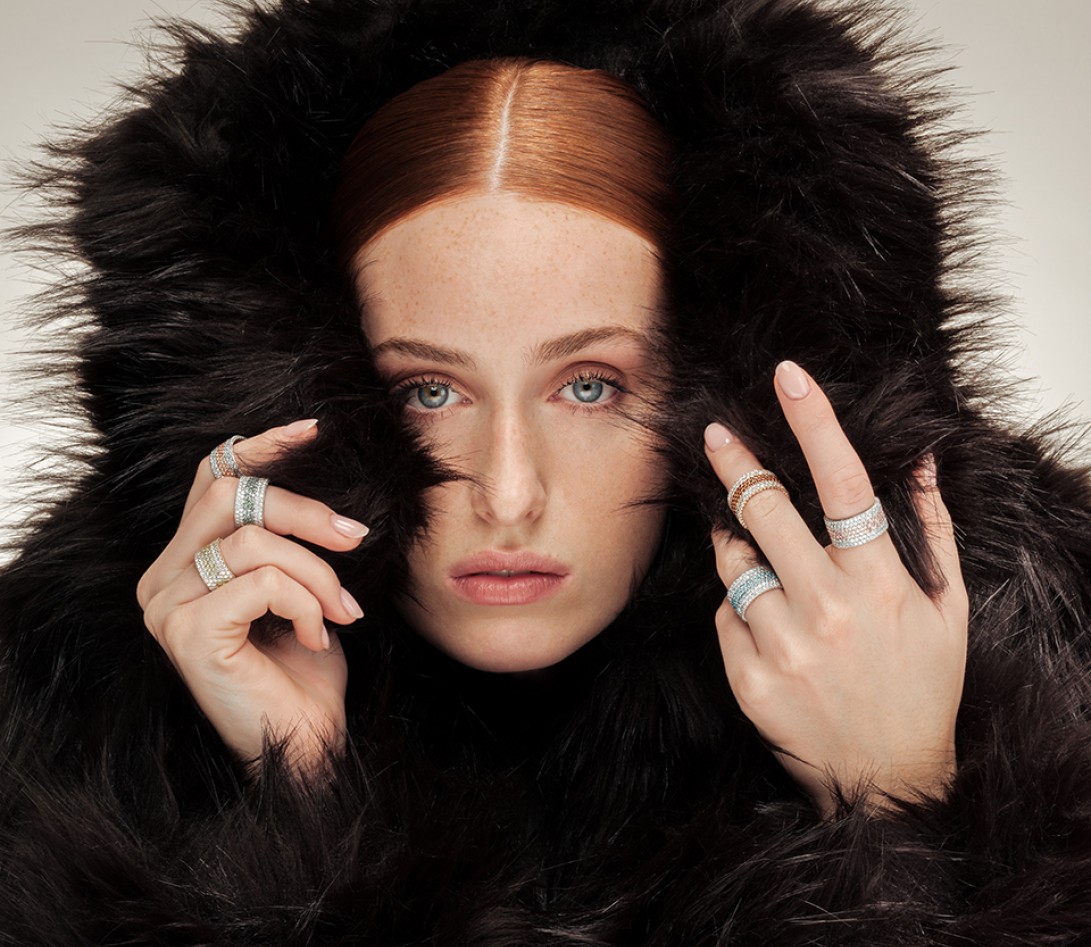 Paying tribute to the famous racket sport, the TENNIS collection offers a chic, linear design with a resolutely modern twist. The TENNIS cognac and white pavé set ring in rose gold is a particularly bold variation on this collection. The warm hue of the rose gold adds a certain softness to this creation and blends perfectly with the colour of the cognac diamonds set in the centre of the ring. Made from 18K recycled gold and lab-grown diamonds, this sustainable luxury ring illustrates COURBET's dedication to nature and movement. Worn day or night, this wide diamond band ring is perfect for any occasion.