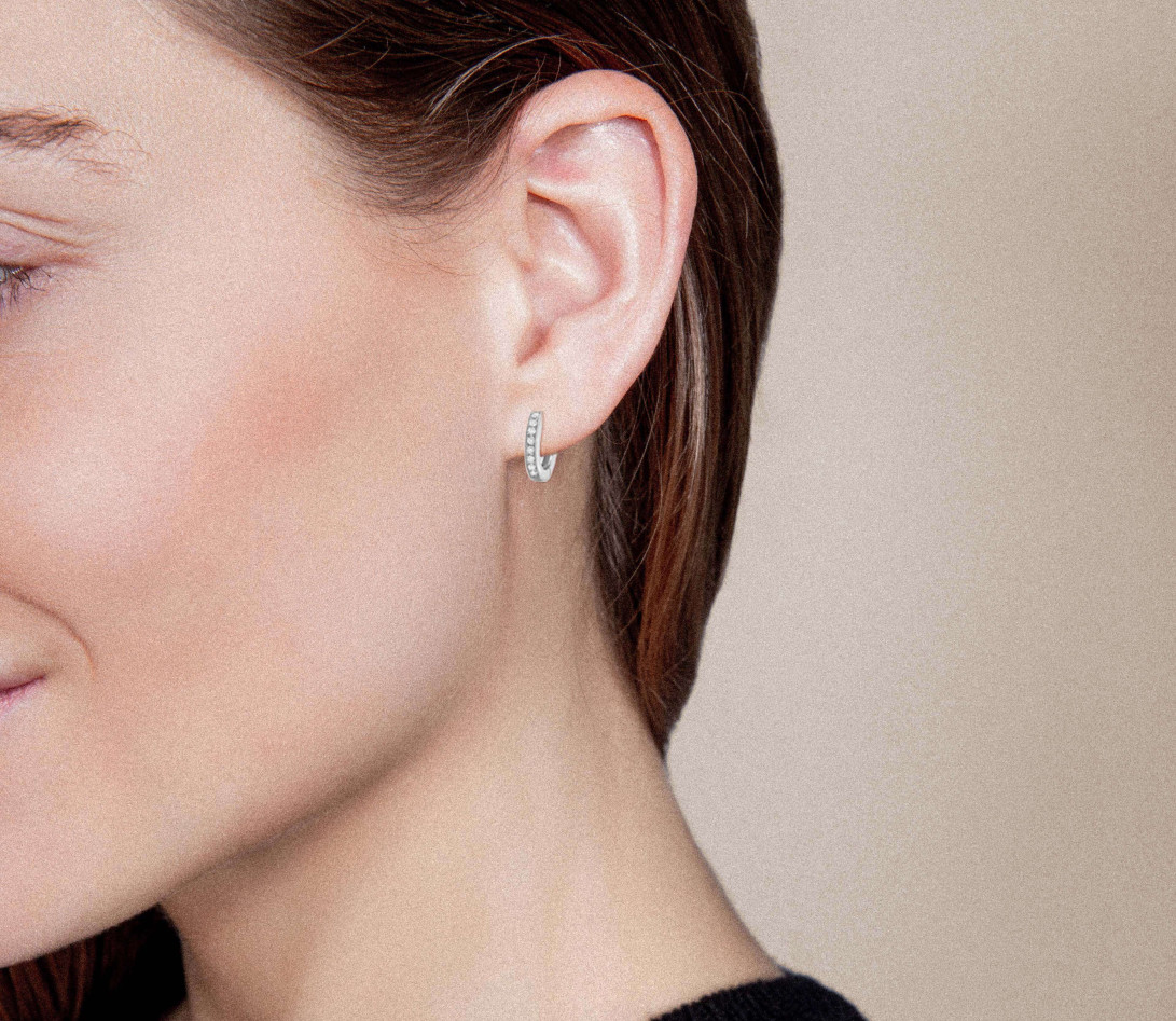 The small diameter of this mono hoop earring allows it to embrace the earlobe in a minimalist style. Surrounded by two gold threads characteristic of the grain setting, the diamonds are relatively discreet on this creation. Sold individually, this hoop earring can be worn as a pair or as a mix and match with several types of earrings, thanks to its timeless yet resolutely contemporary style.
