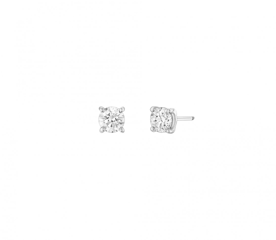 4 prongs stud earrings in white gold
